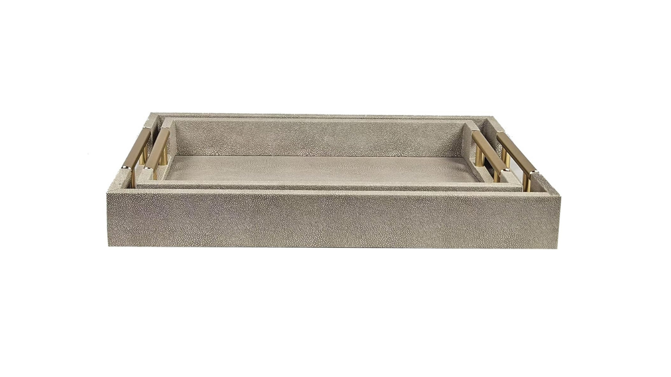 Decorative Wood Serving Tray Set (2-Piece, Ivory with Gold Handles)