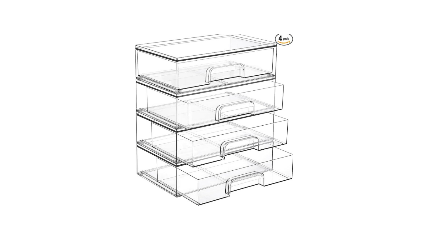 Clear, stackable drawers designed to keep your space clean, calm, and beautifully organized
